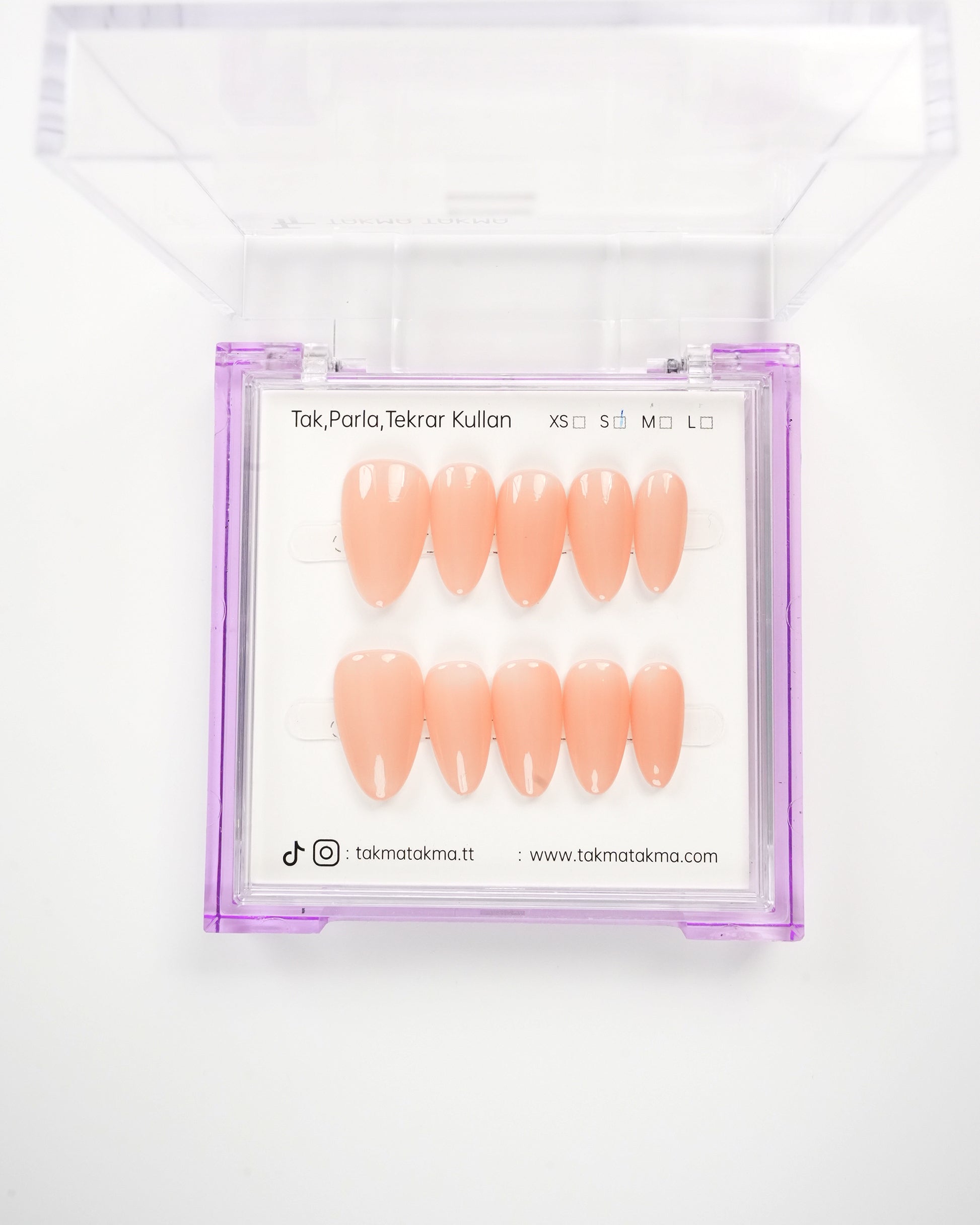 TakmaTakma tırnaklarınızı istediğiniz zaman çıkarıp tekrar takabilirsiniz, üstelik zahmetsizce! İstediğiniz gibi kullanabilir, her an şıklığınızı yenileyebilirsiniz.