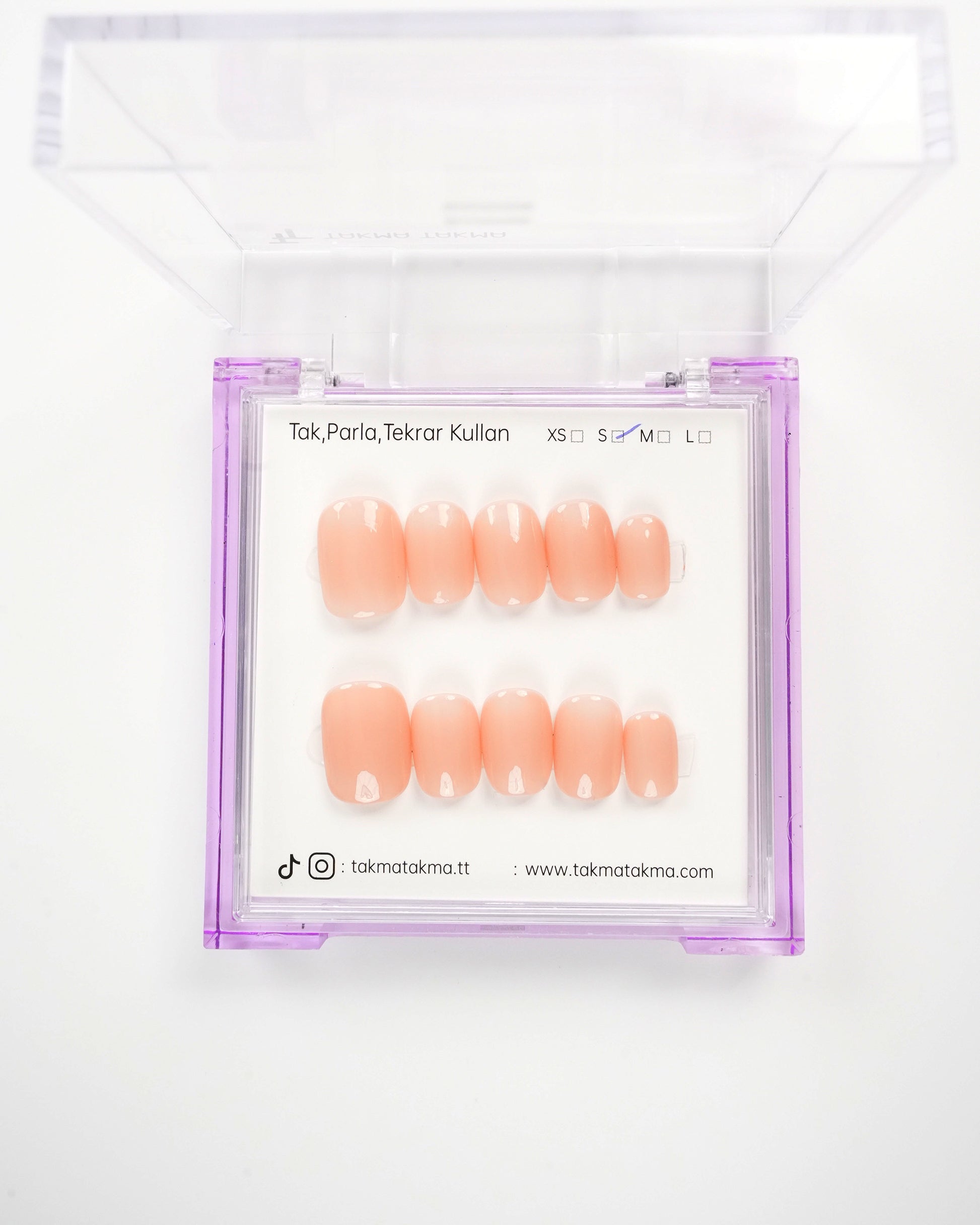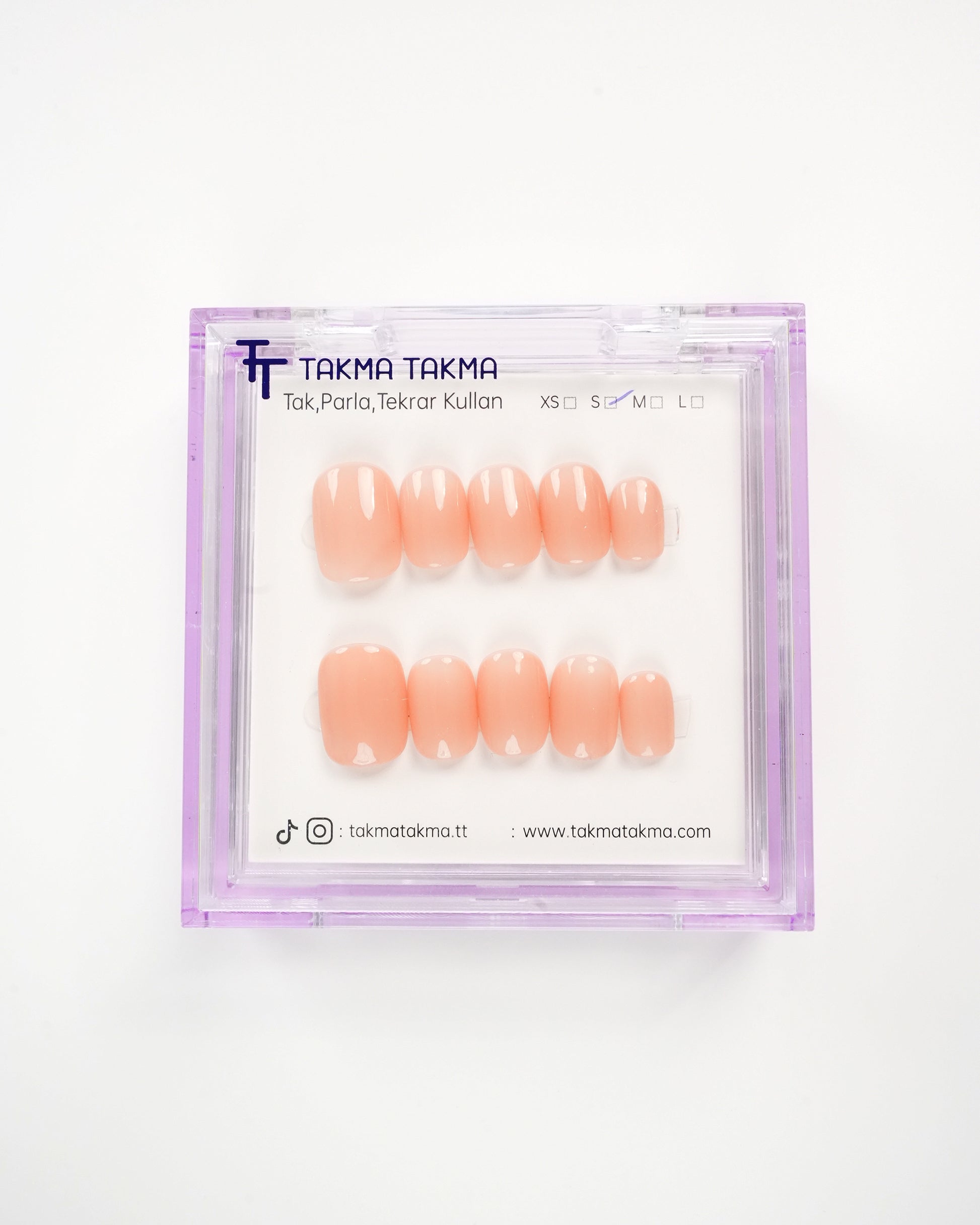 TakmaTakma tırnaklarınızı istediğiniz zaman çıkarıp tekrar takabilirsiniz, üstelik zahmetsizce! İstediğiniz gibi kullanabilir, her an şıklığınızı yenileyebilirsiniz.