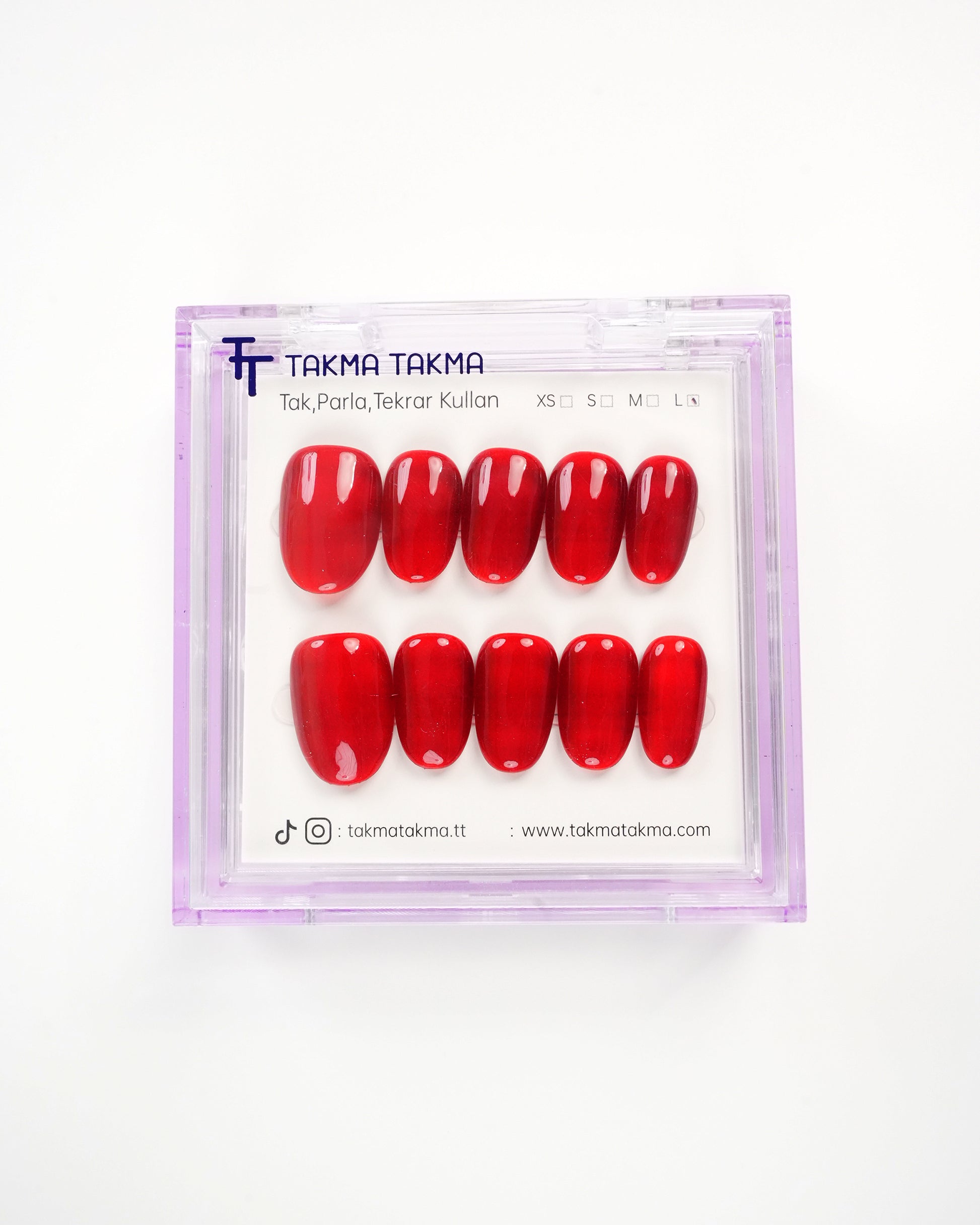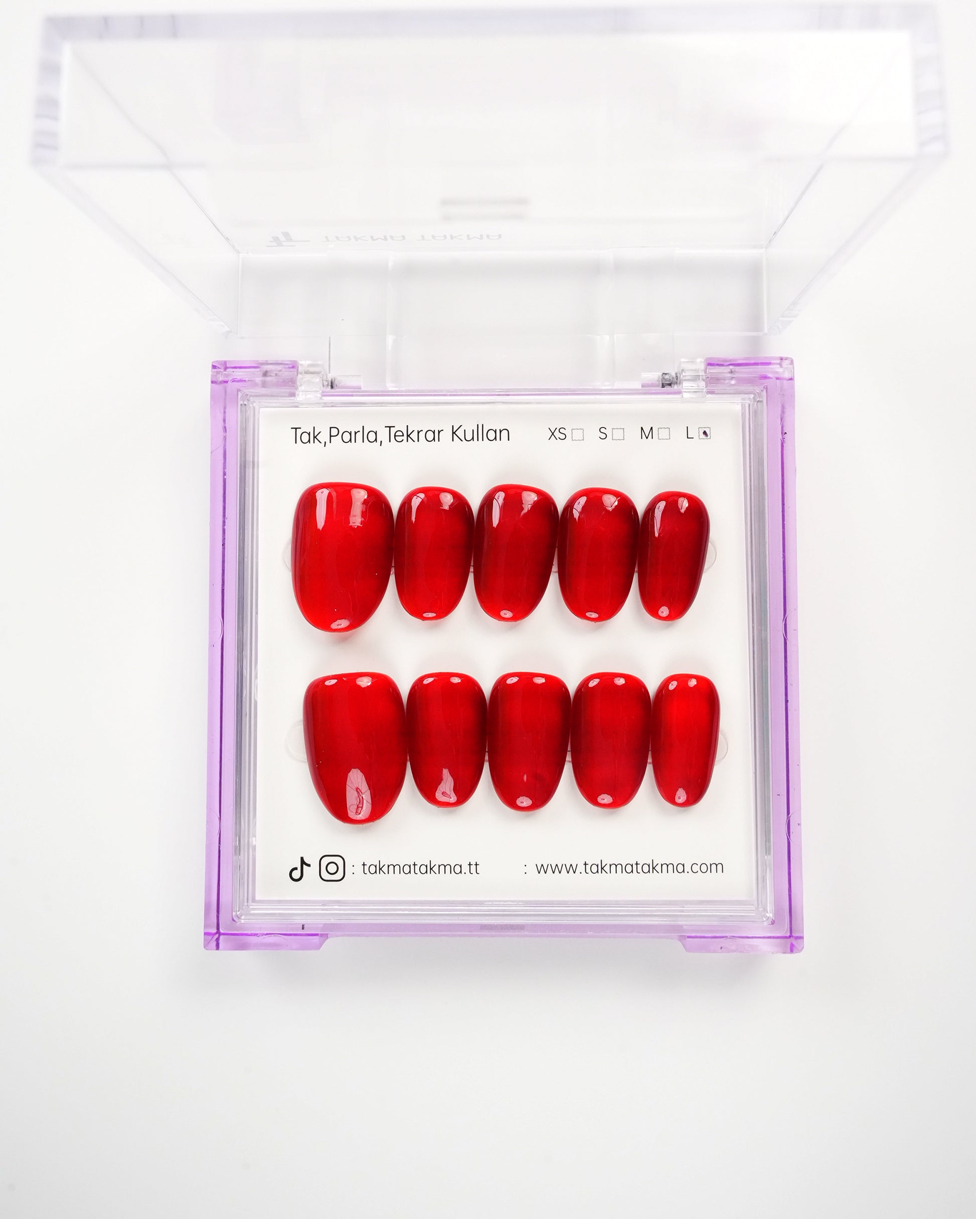 15'li Kırmızı Kısa Oval KOV1561 Tekrar Kullanılabilir El Yapımı Protez Takma Tırnak