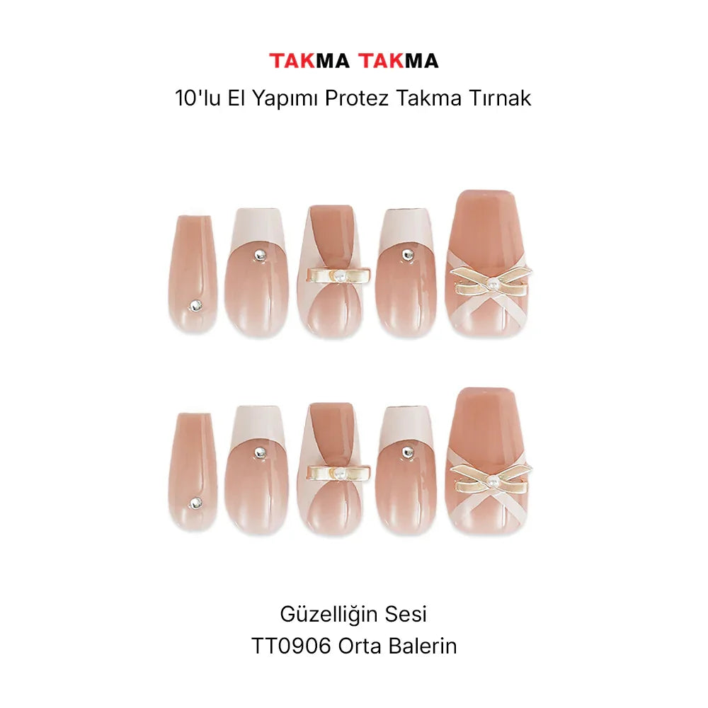10'lu Ten Rengi Orta Baleri TT0906 Tekrar Kullanılabilir El Yapımı Protez Takma Tırnak