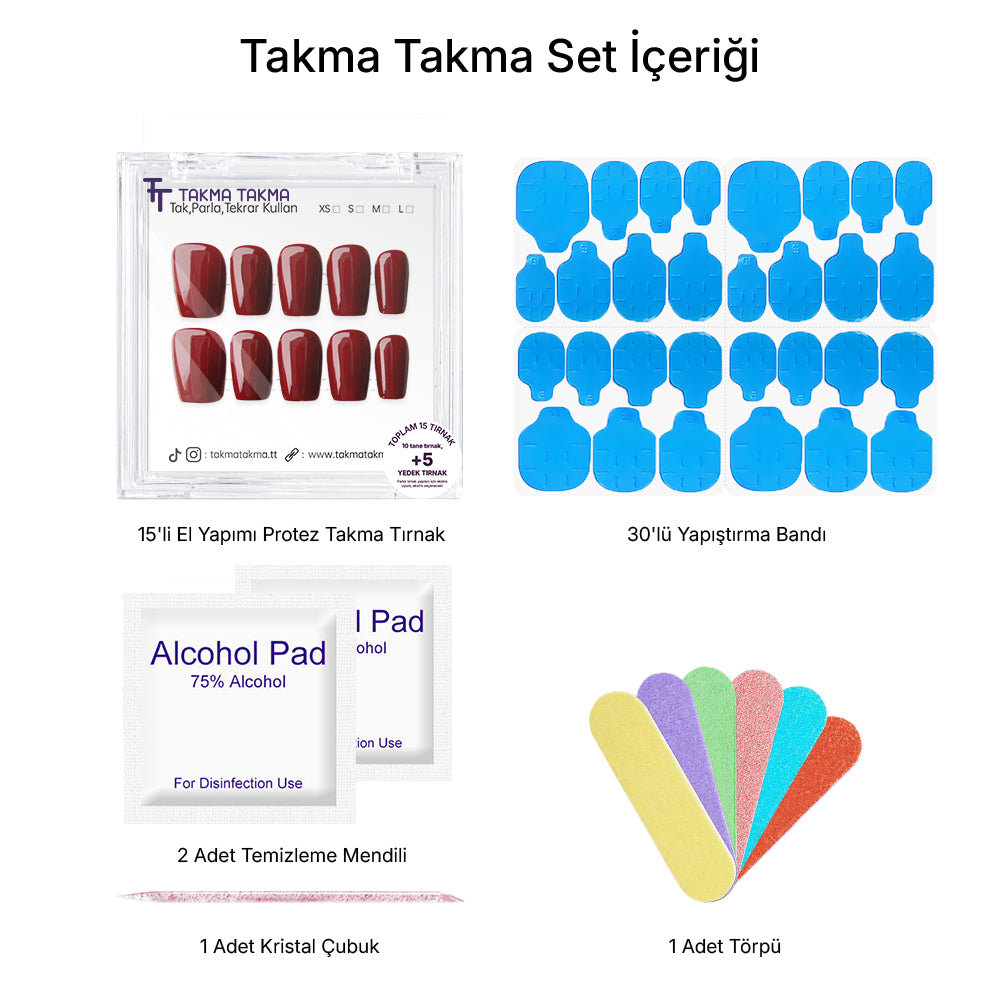 TakmaTakma tırnaklarınızı istediğiniz zaman çıkarıp tekrar takabilirsiniz, üstelik zahmetsizce! İstediğiniz gibi kullanabilir, her an şıklığınızı yenileyebilirsiniz.