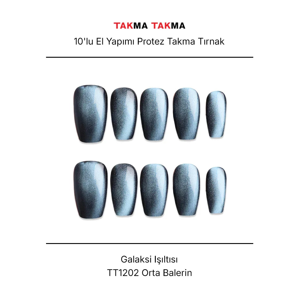 10'lu Mavi Orta Balerin TT1202 Tekrar Kullanılabilir El Yapımı Protez Takma Tırnak