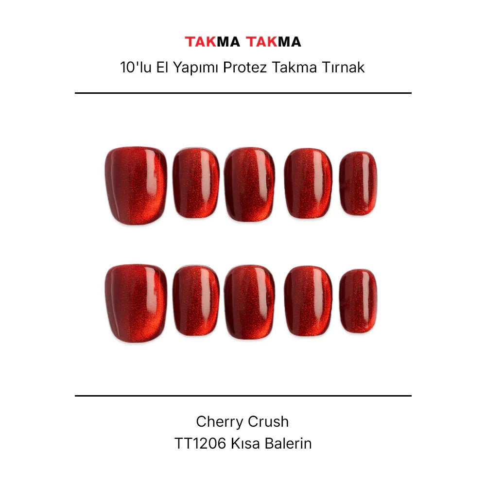 10'lu Kırmızı Kısa Kare TT1206 Tekrar Kullanılabilir El Yapımı Protez Takma Tırnak