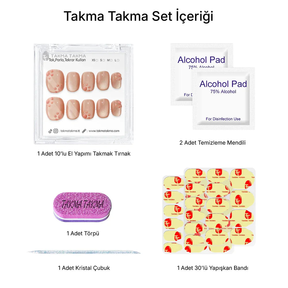 TakmaTakma tırnaklarınızı istediğiniz zaman çıkarıp tekrar takabilirsiniz, üstelik zahmetsizce! İstediğiniz gibi kullanabilir, her an şıklığınızı yenileyebilirsiniz.
