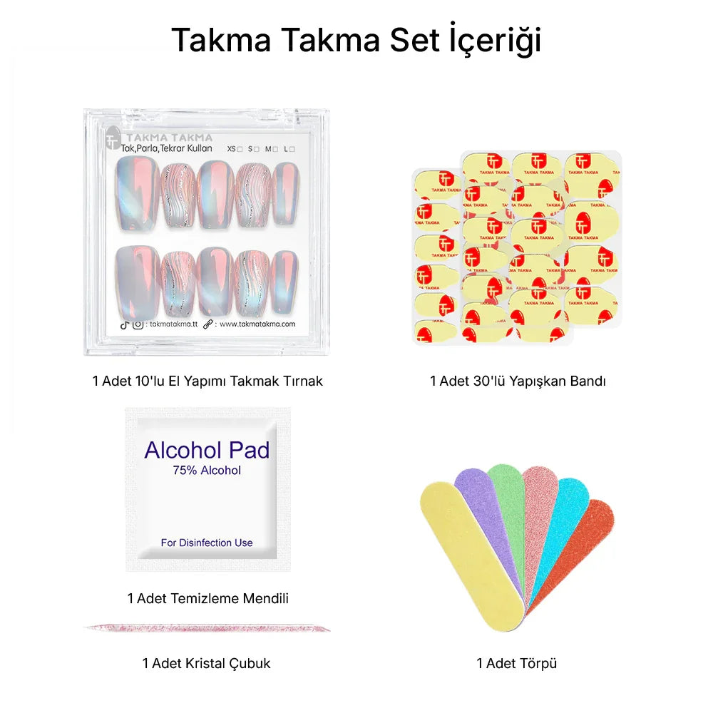 TakmaTakma tırnaklarınızı istediğiniz zaman çıkarıp tekrar takabilirsiniz, üstelik zahmetsizce! İstediğiniz gibi kullanabilir, her an şıklığınızı yenileyebilirsiniz.