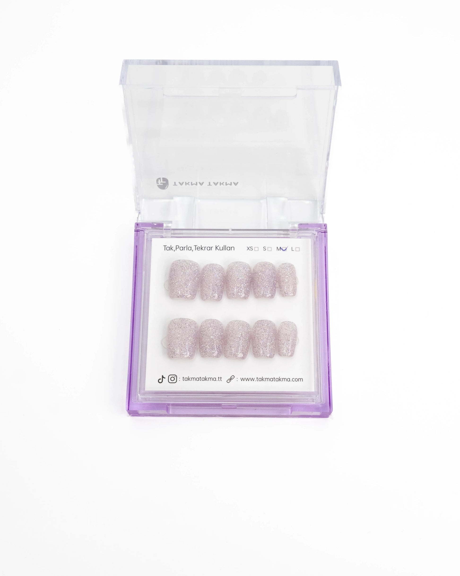 Tekrar Kullanılabilir El Yapımı Protez Takma Tırnak TT1251 - Lavender Stardust - 10'lu