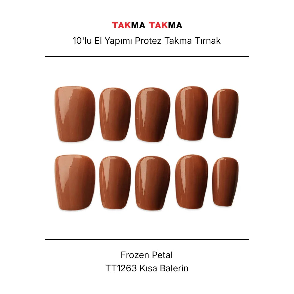 10'lu Kahverengi Kısa Oval TT1263 Tekrar Kullanılabilir El Yapımı Protez Takma Tırnak