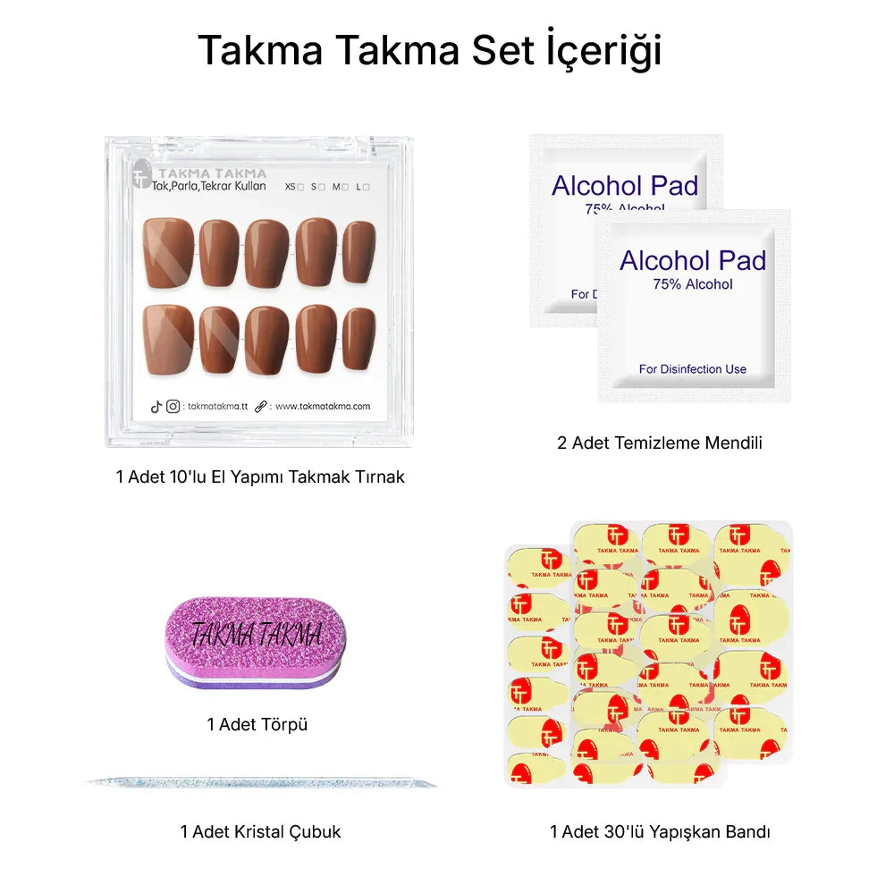 TakmaTakma tırnaklarınızı istediğiniz zaman çıkarıp tekrar takabilirsiniz, üstelik zahmetsizce! İstediğiniz gibi kullanabilir, her an şıklığınızı yenileyebilirsiniz.