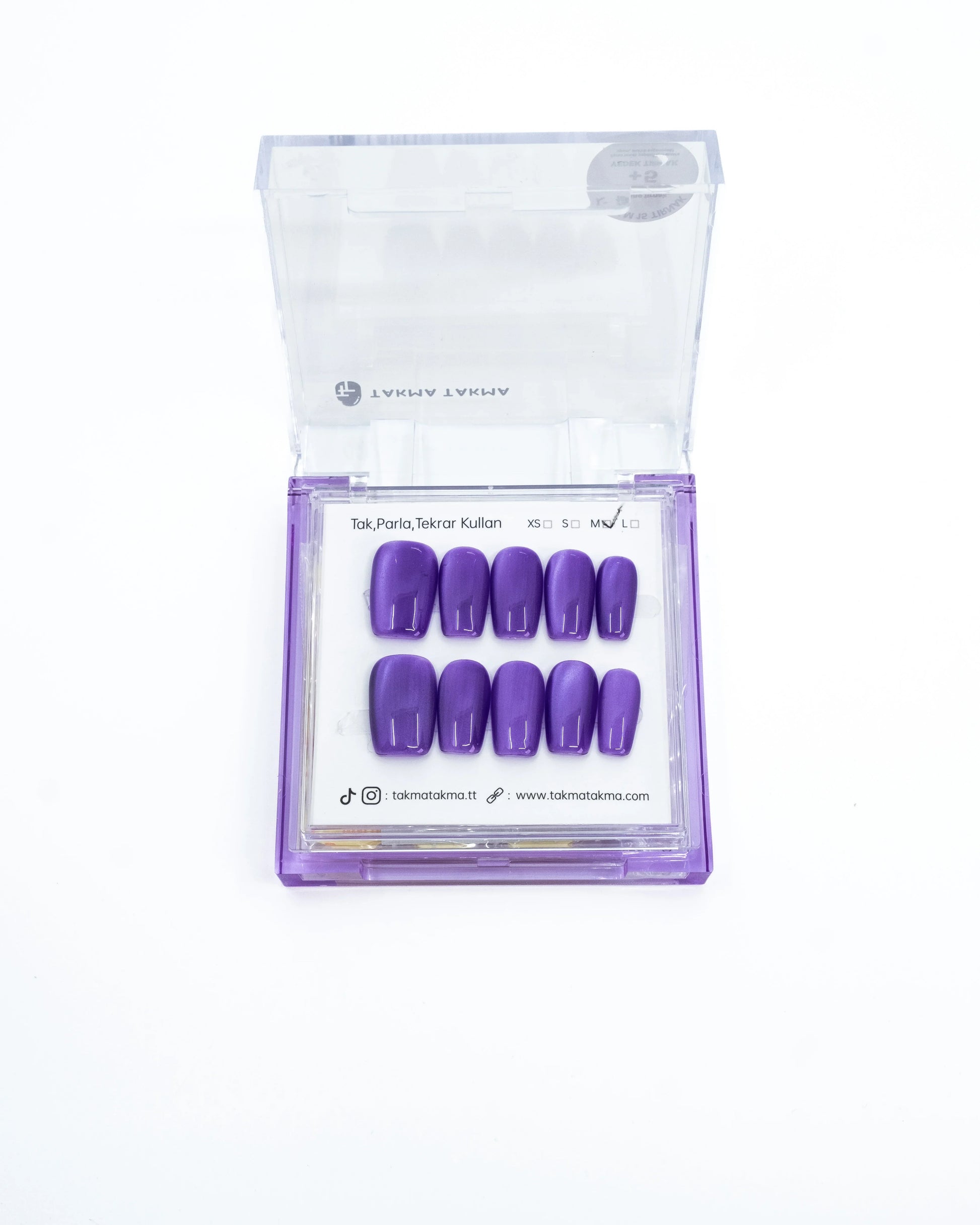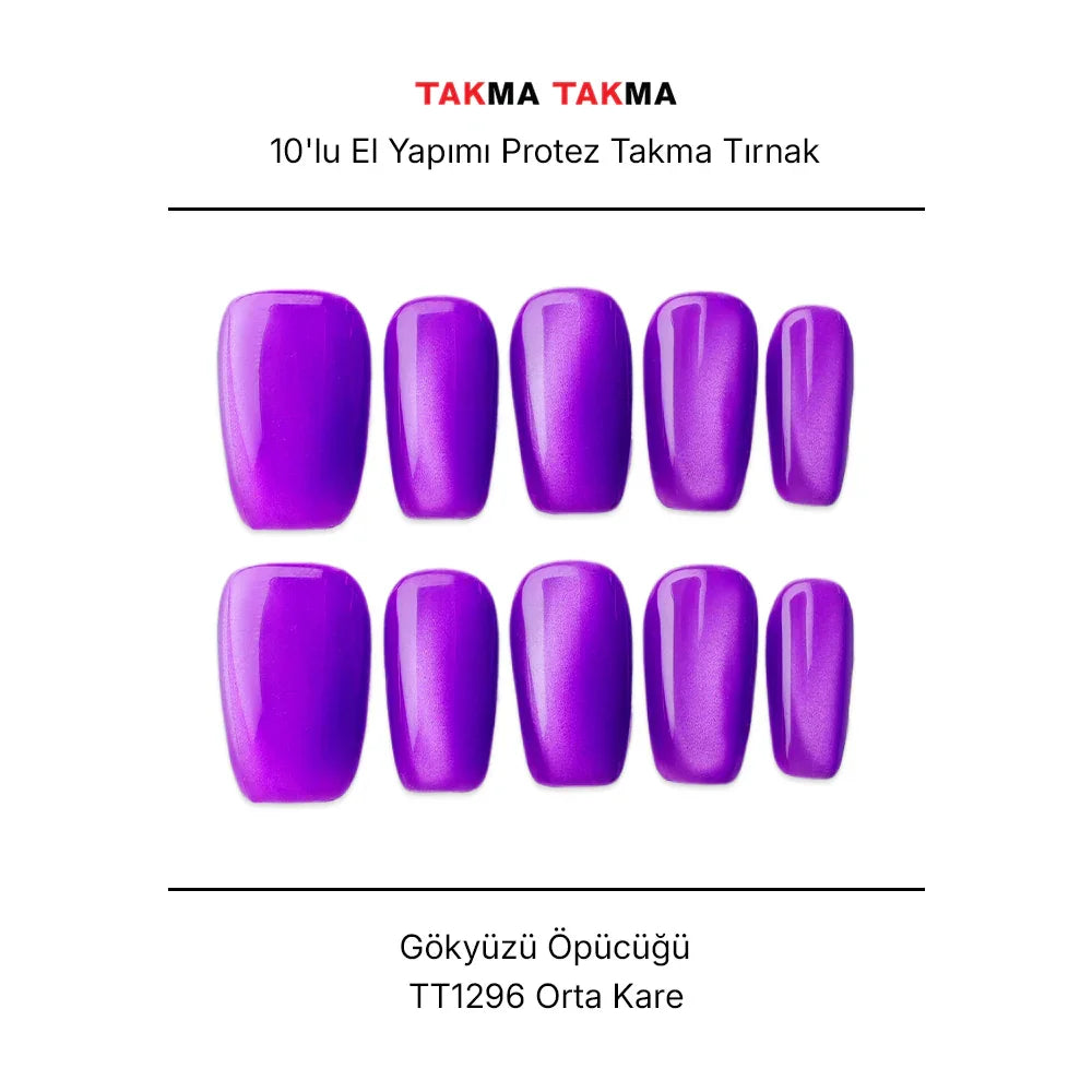 15'li Mor Orta Kare TT1296 Tekrar Kullanılabilir El Yapımı Protez Takma Tırnak