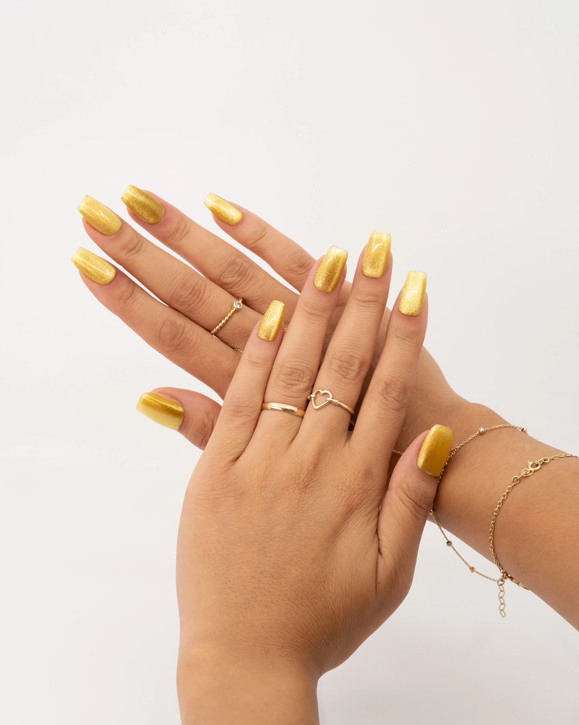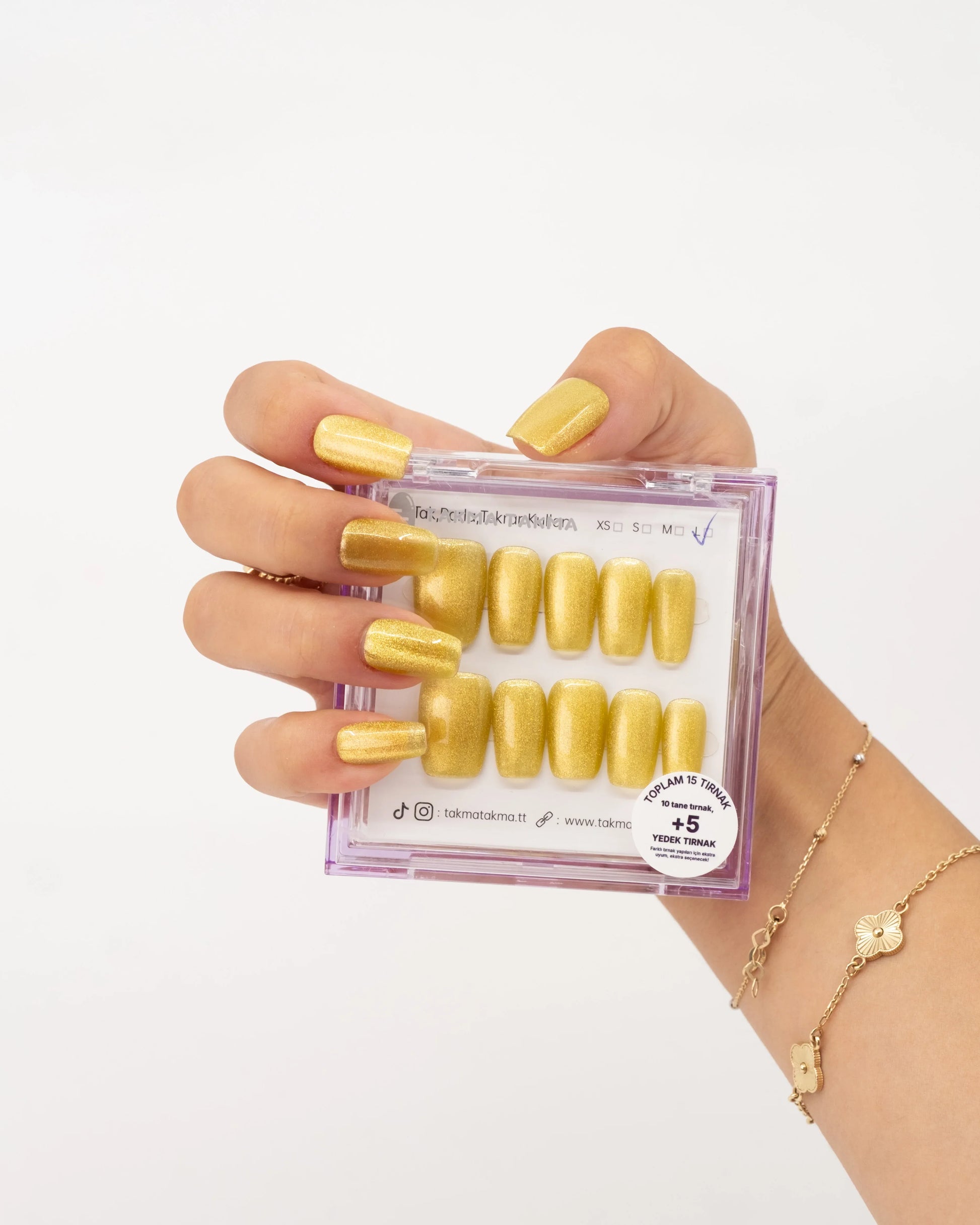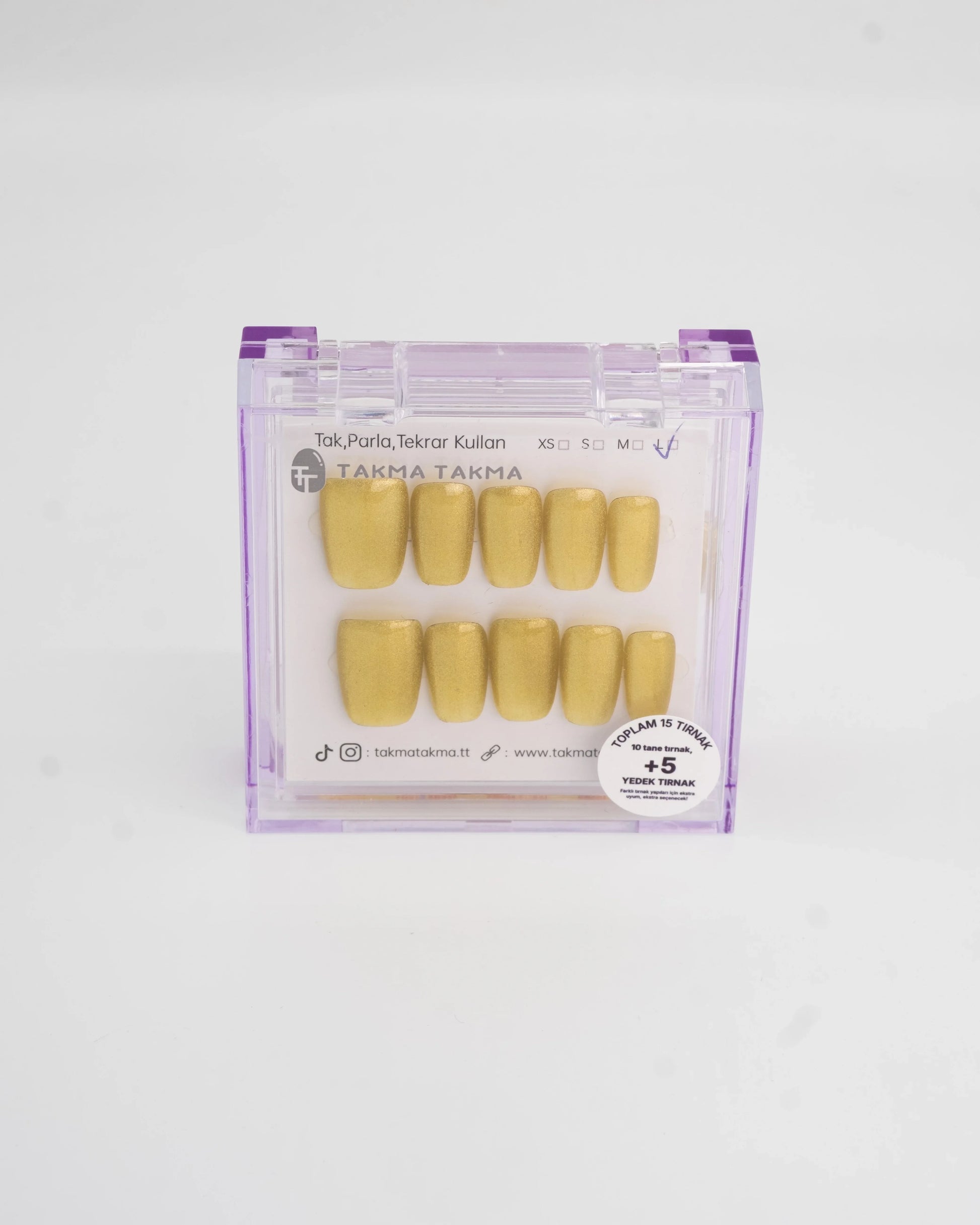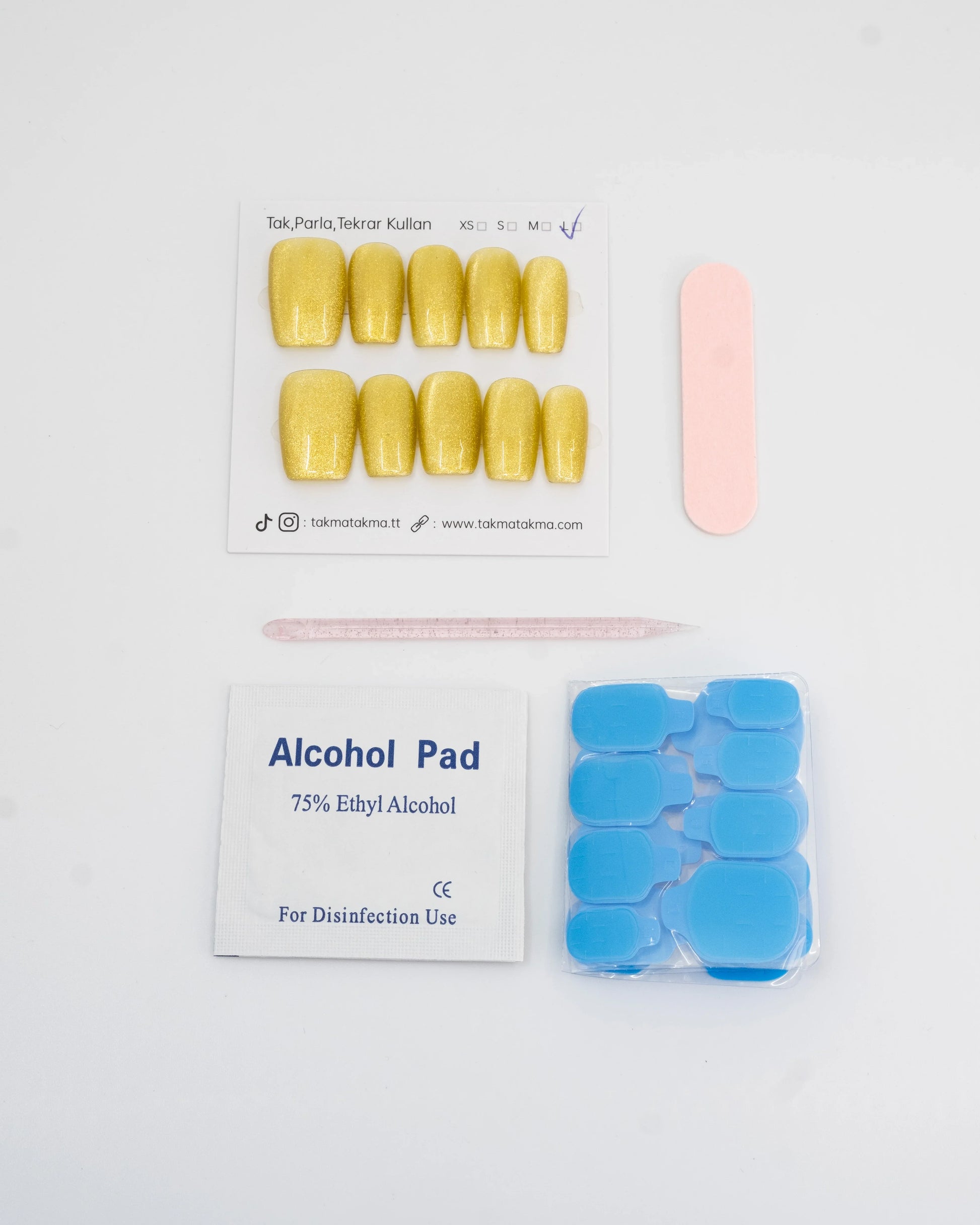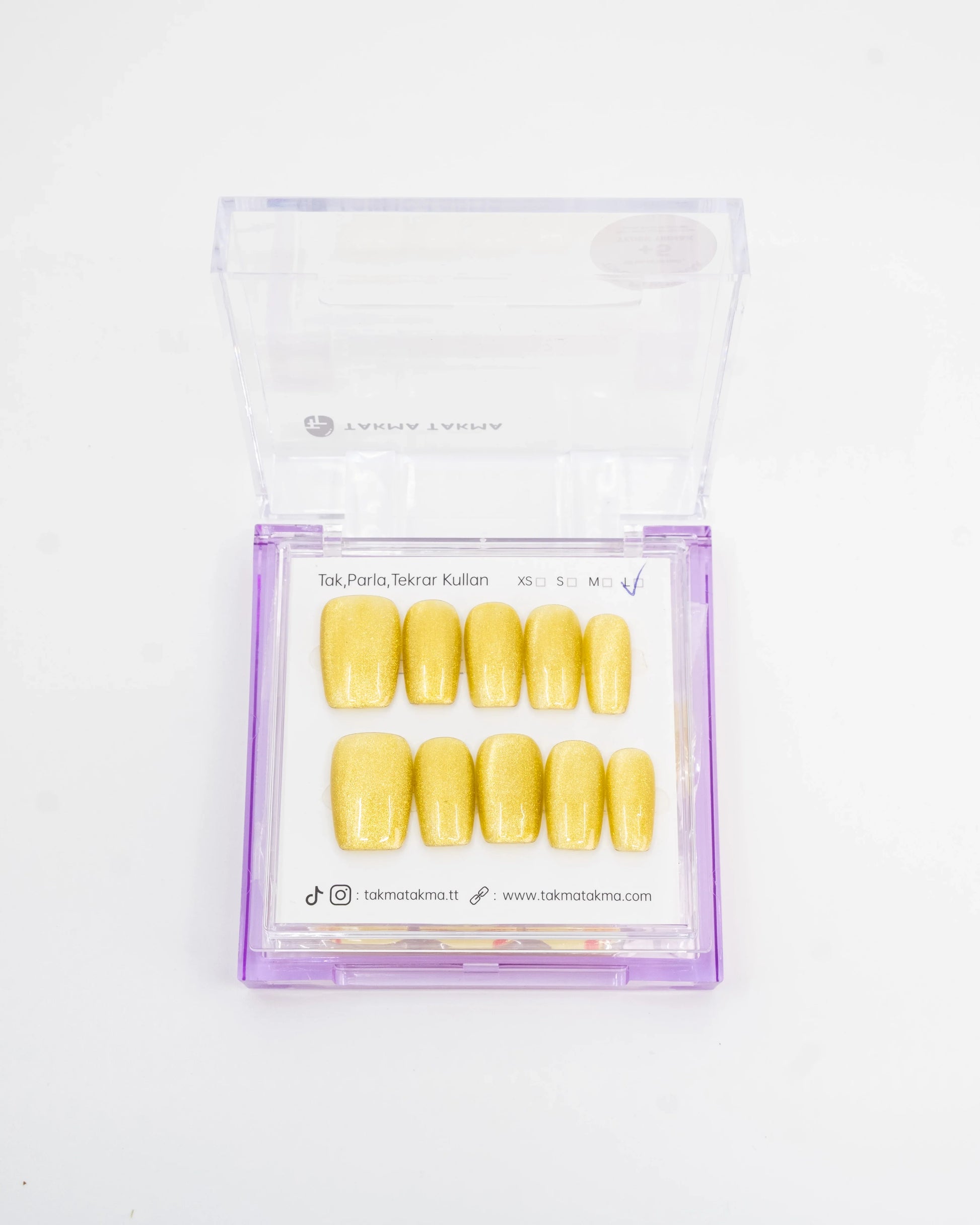 15'li Kısa Kare Sarı TT1310 Tekrar Kullanılabilir El Yapımı Protez Takma Tırnak
