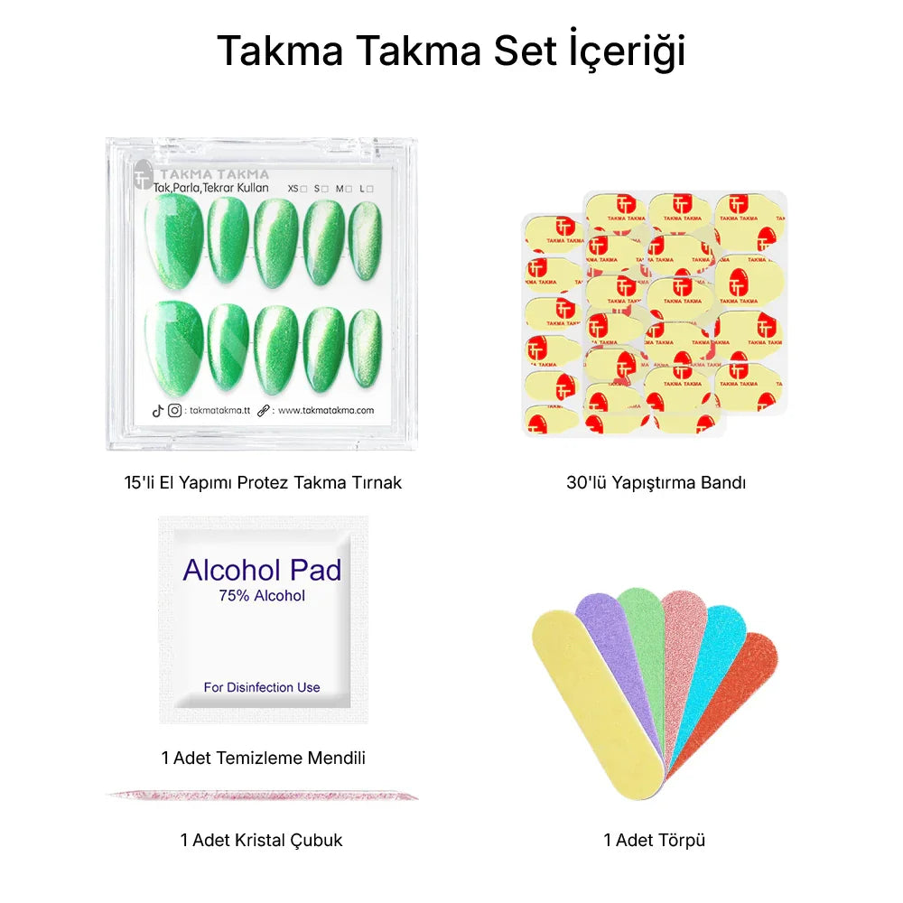 TakmaTakma tırnaklarınızı istediğiniz zaman çıkarıp tekrar takabilirsiniz, üstelik zahmetsizce! İstediğiniz gibi kullanabilir, her an şıklığınızı yenileyebilirsiniz.