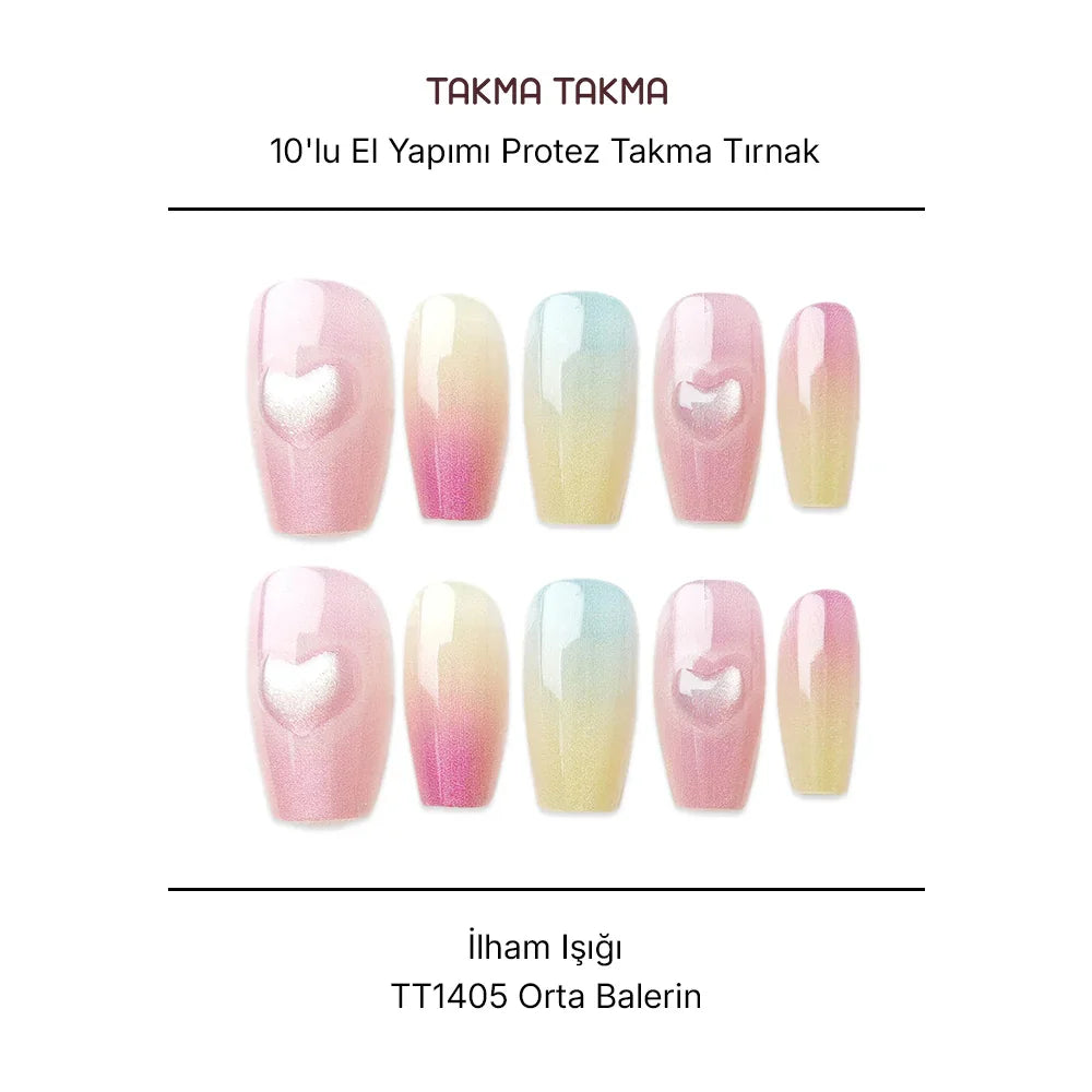 10'lu Renkli Orta Balerin TT1405 Tekrar Kullanılabilir El Yapımı Protez Takma Tırnak