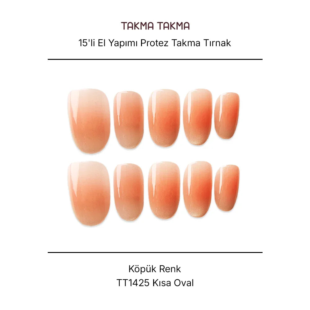 15'li Ten Rengi Kısa Oval TT1425 Tekrar Kullanılabilir El Yapımı Protez Takma Tırnak