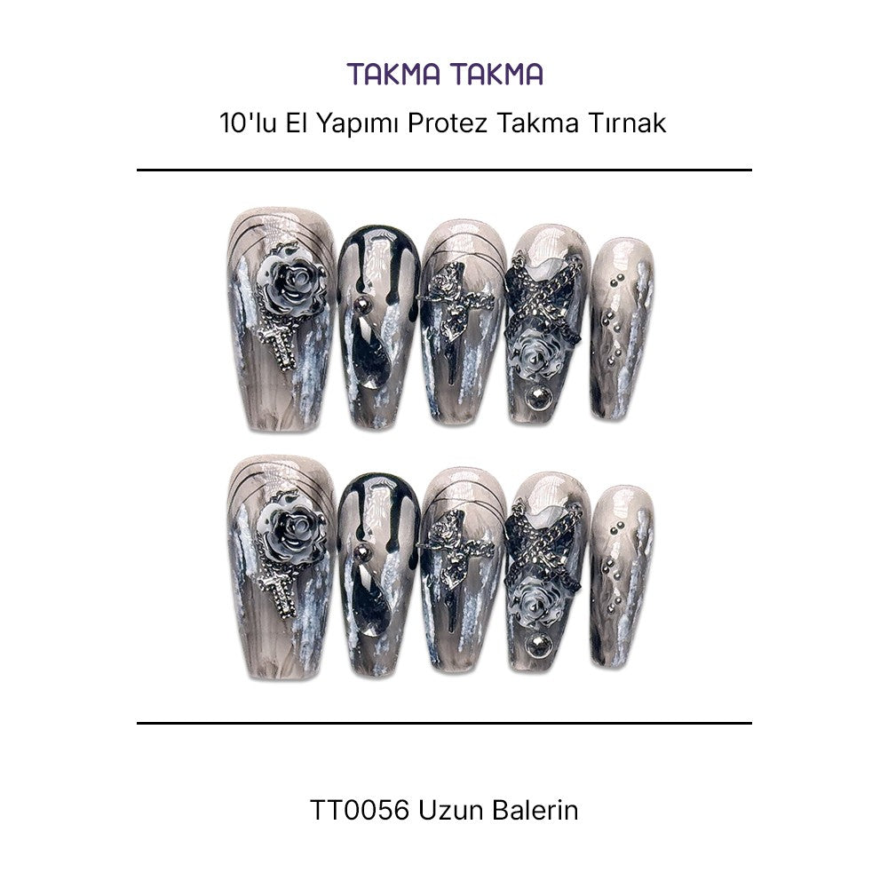 TT0056 - Güzellik Esintisi - 10'lu Tekrar Kullanılabilir El Yapımı Protez Takma Tırnak