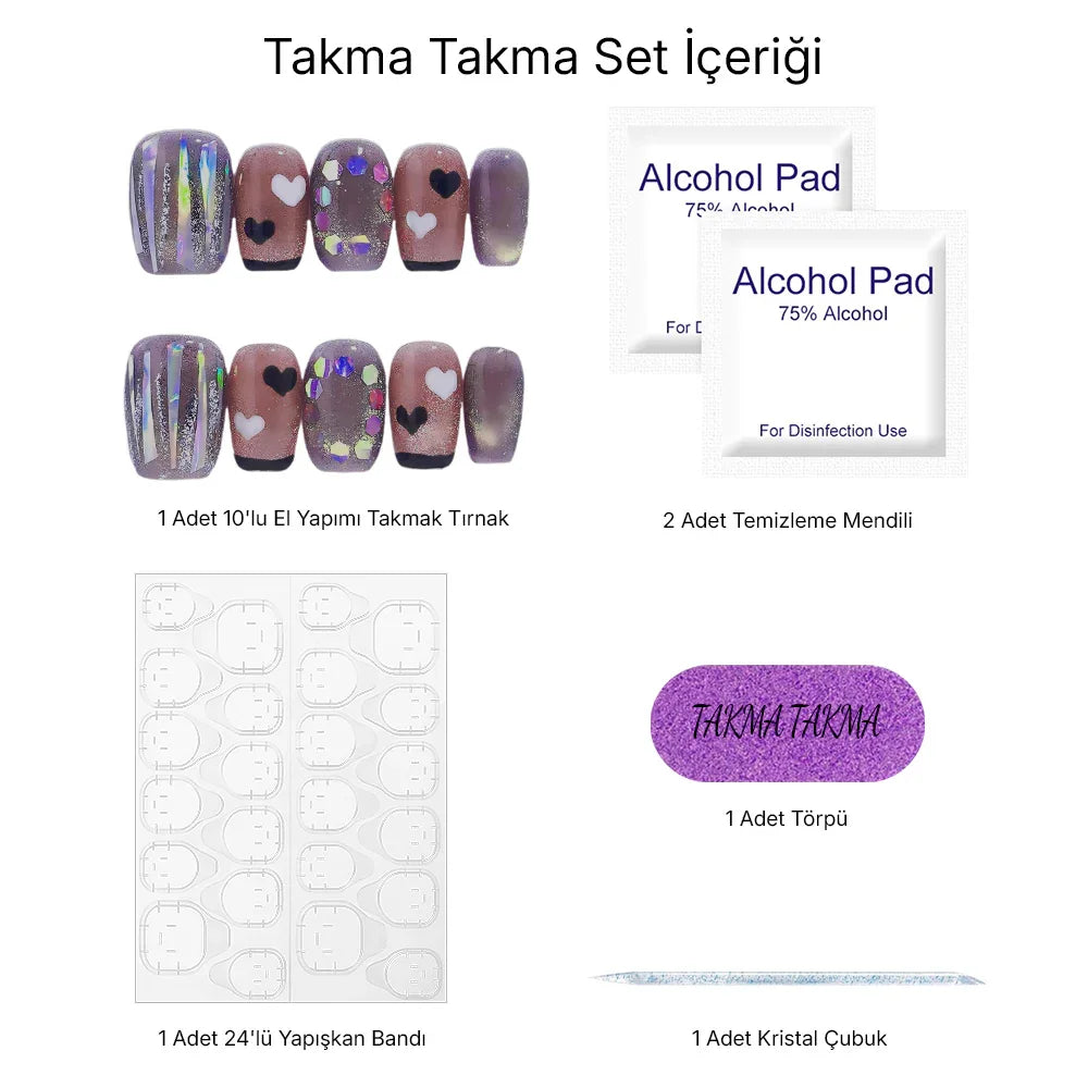 TakmaTakma tırnaklarınızı istediğiniz zaman çıkarıp tekrar takabilirsiniz, üstelik zahmetsizce! İstediğiniz gibi kullanabilir, her an şıklığınızı yenileyebilirsiniz.