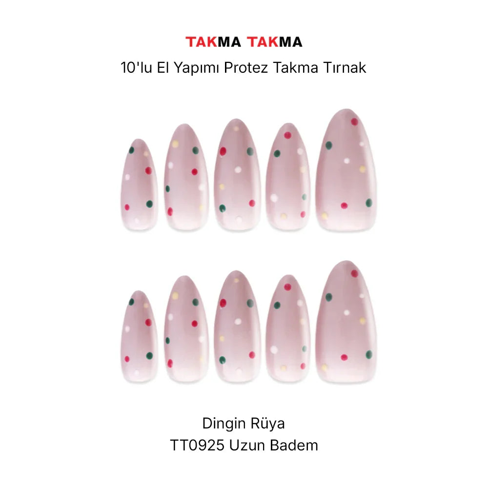 10'lu Kısa Badem Pembe TT0925 Tekrar Kullanılabilir El Yapımı Protez Takma Tırnak