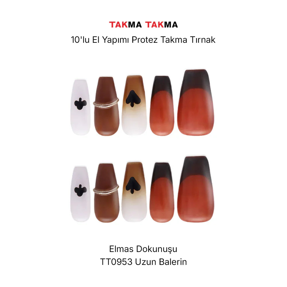 10'lu Kırmızı Uzun Balerin TT0953 Tekrar Kullanılabilir El Yapımı Protez Takma Tırnak