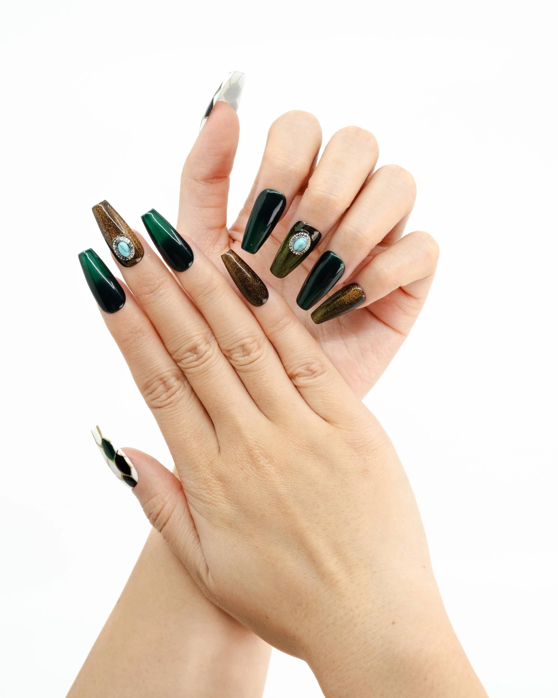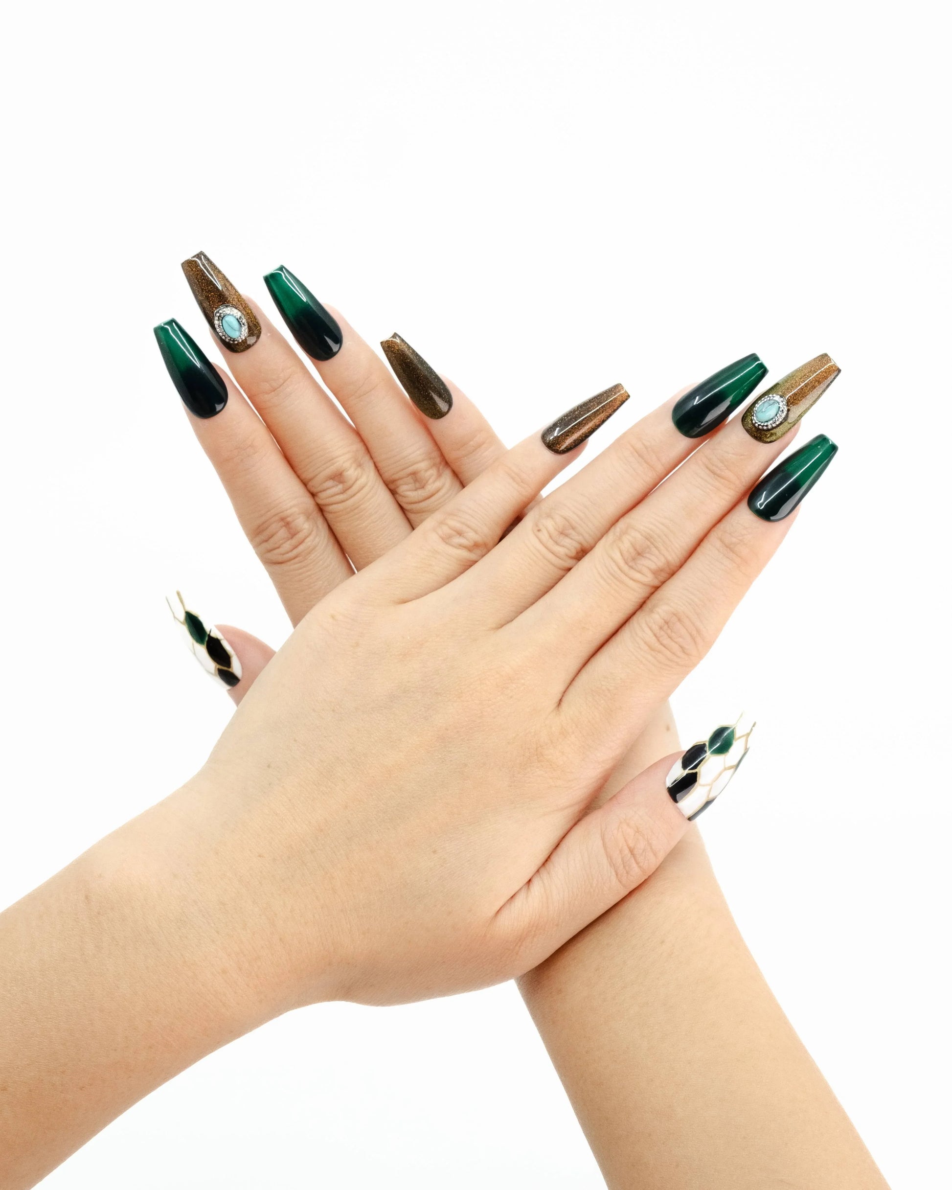 10'lu Siyah Uzun Balerin TT0969 Tekrar Kullanılabilir El Yapımı Protez Takma Tırnak