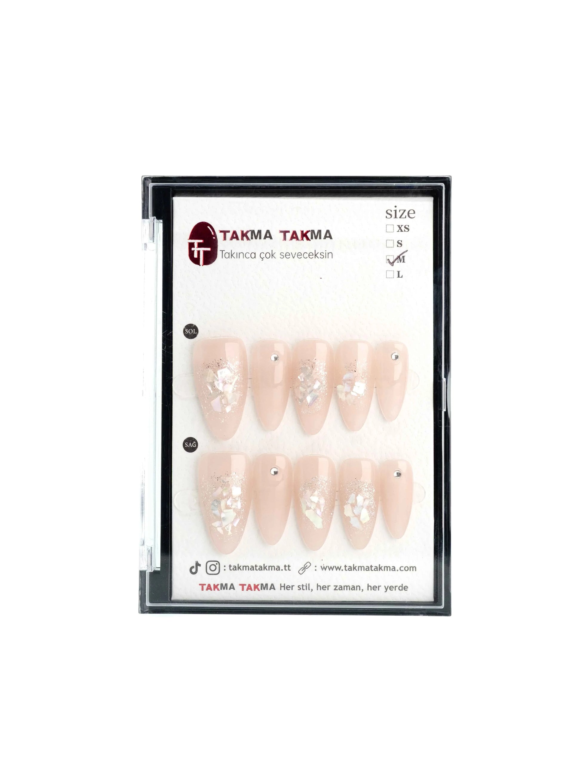 10'lu Ten Rengi Uzun Badem TT1019 Tekrar Kullanılabilir El Yapımı Protez Takma Tırnak