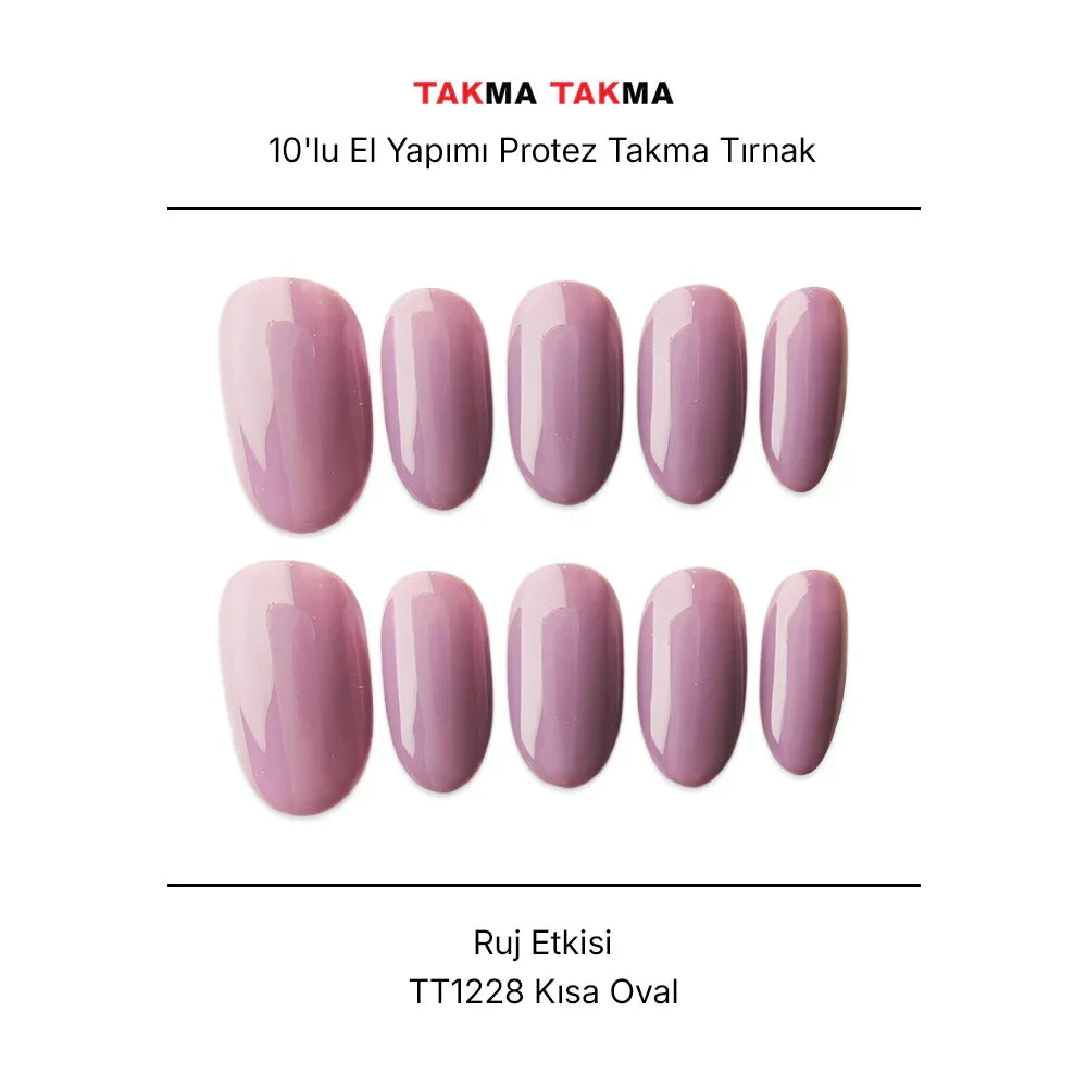 10'lu Gri Kısa Oval TT1228 Tekrar Kullanılabilir El Yapımı Protez Takma Tırnak