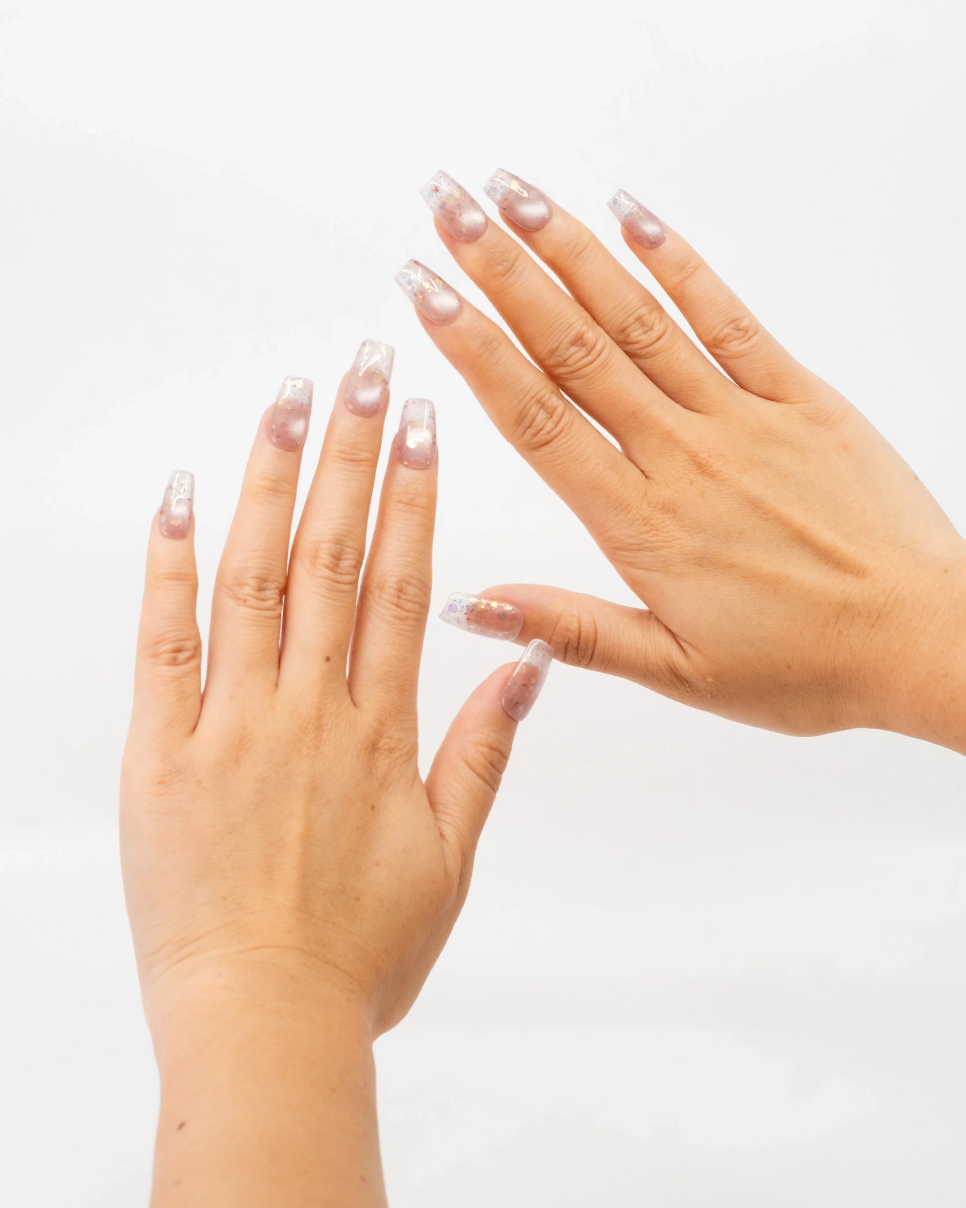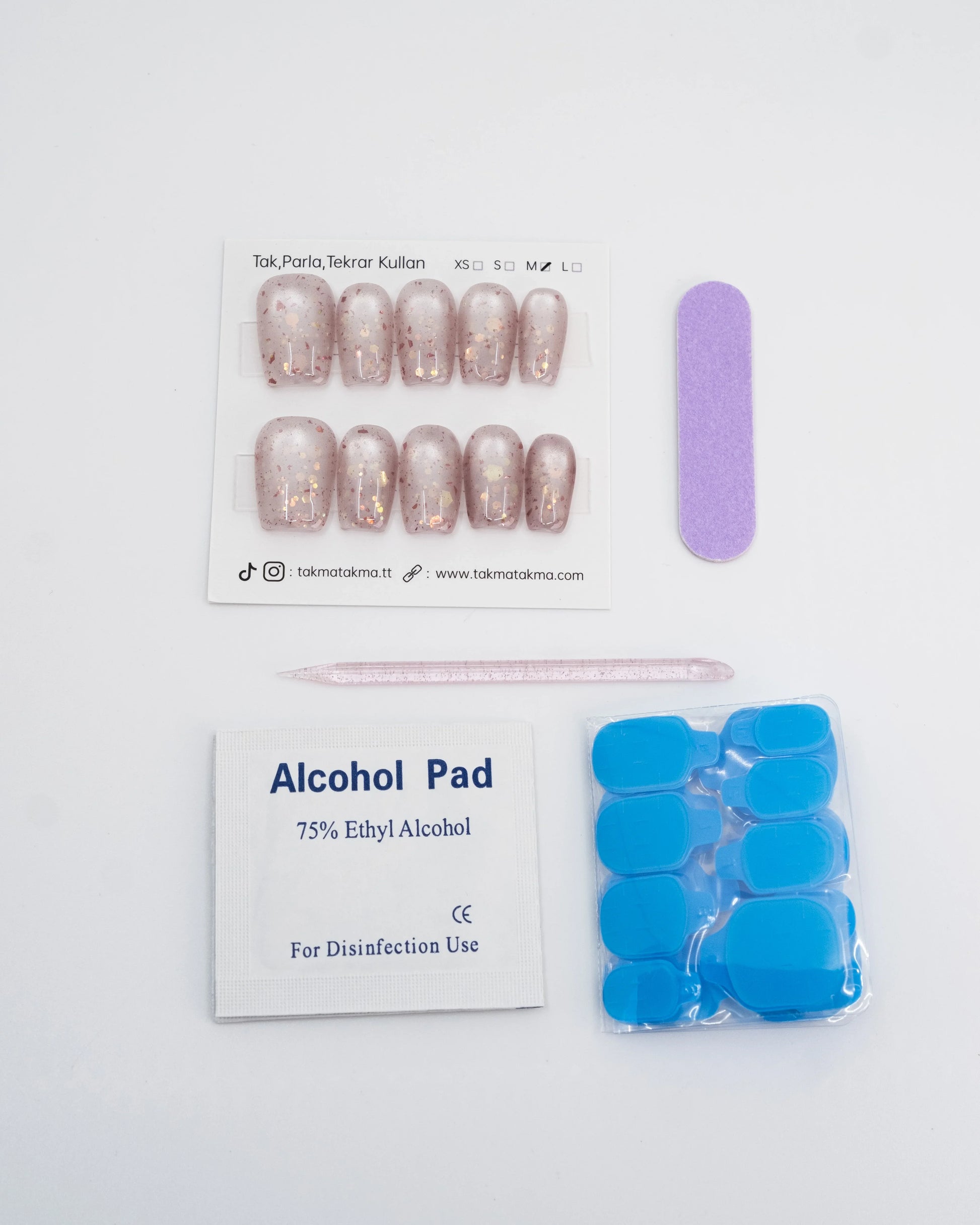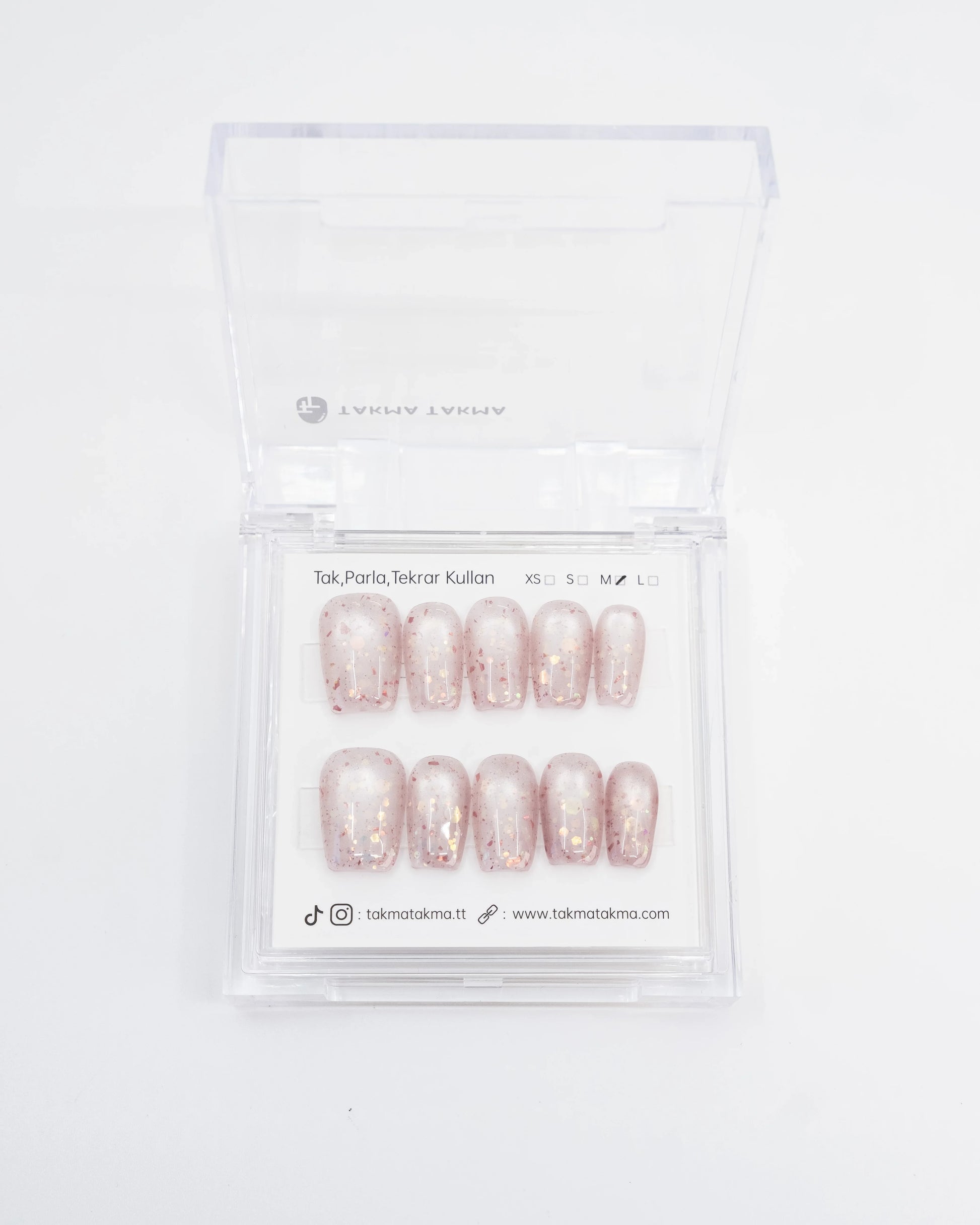Kısa süreli ışıltılar için ideal. Nazik yapışkan bantlarımızla kolayca takabilir ve 5-7 gün boyunca harika tırnaklara sahip olabilirsiniz.
